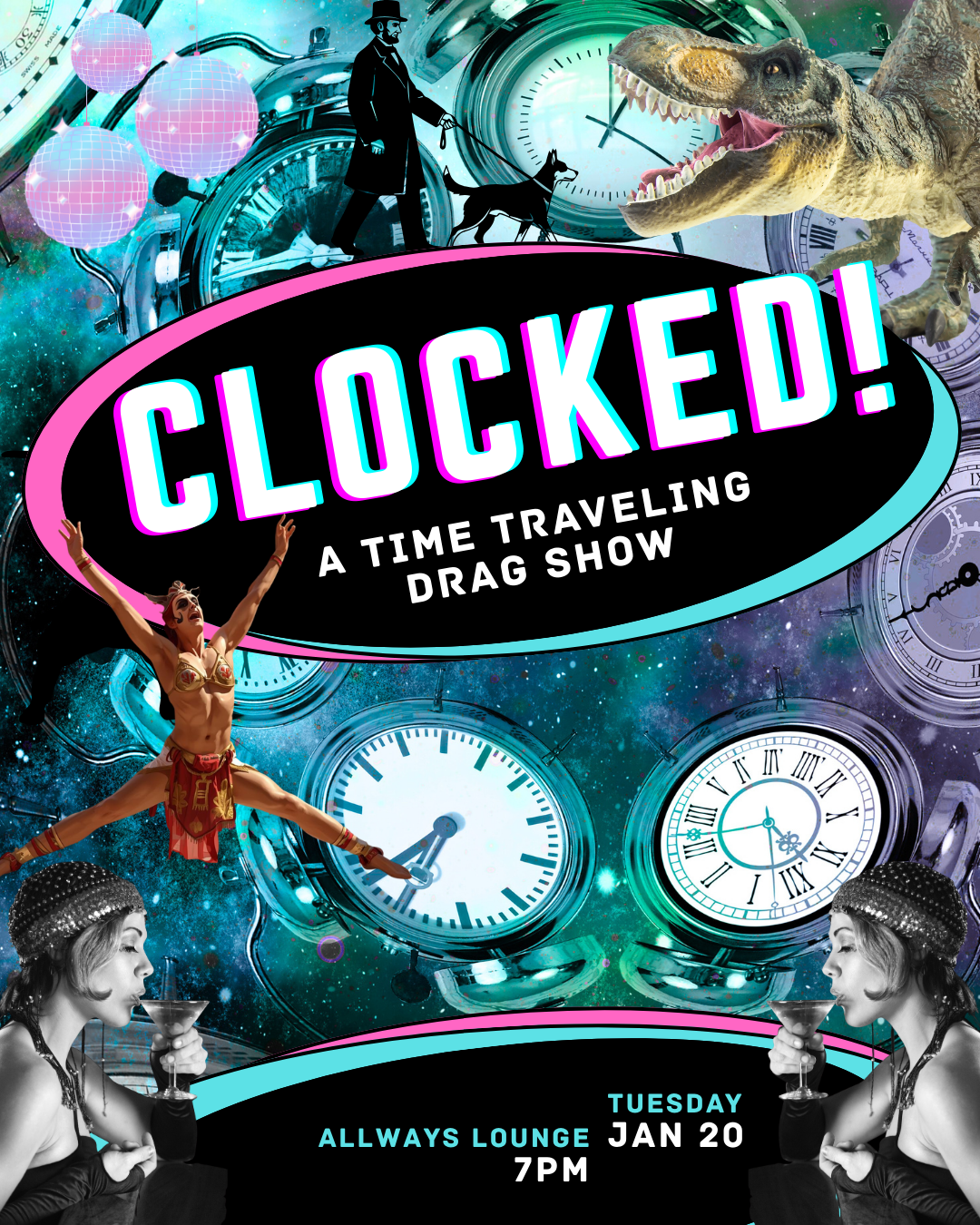 Come get blasted into the past, and let our queens, kings, in betweens, and variety performers give you a campy education in history in order to help fund public history projects and keep our performers paid all at once.